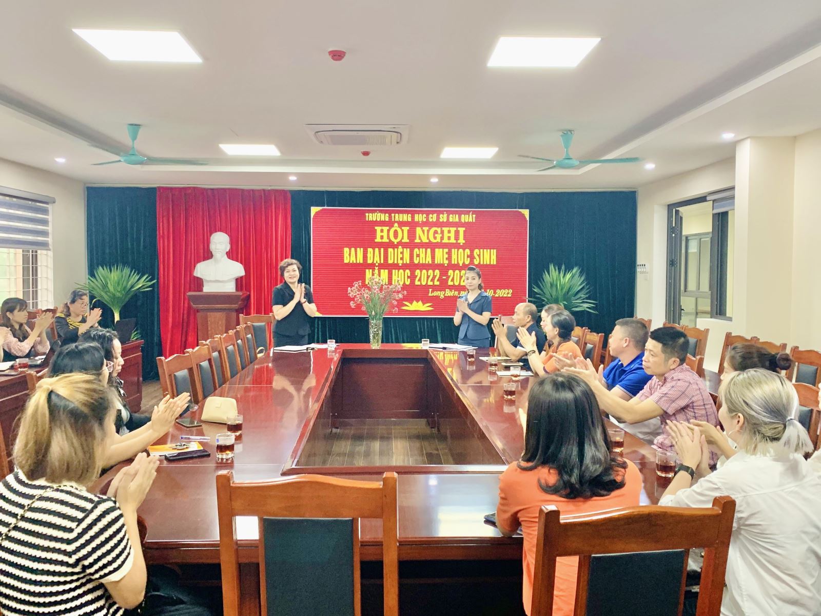 Vào 17 giờ chiều ngày 01/10/2022, trường THCS Gia Quất đã tổ chức Hội nghị Ban đại diện CMHS. Tham gia hội nghị, về phía nhà trường có cô giáo Lê Kim Tuyến – Hiệu trưởng, cô giáo Phạm Thị Thanh Bình – Phó hiệu trưởng và 10 thầy cô giáo chủ nhiệm các khối lớp 6,7,8,9. Về phía phụ huynh, mỗi lớp gồm đầy đủ Trưởng và phó ban đại diện CMHS tham dự.
