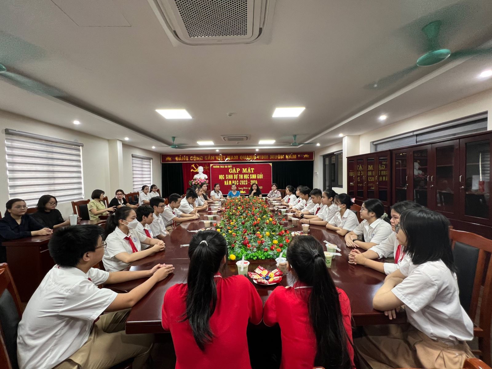 Thực hiện Kế hoạch số 13/KH-PGDĐT ngày 18/7/2023 về việc Bồi dưỡng và thi chọn học sinh giỏi các môn văn hóa và khoa học năm học 2023 – 2024, sáng thứ tư ngày 02/8/2023, BGH trường THCS Gia Quất đã tổ chức gặp mặt, động viên, dặn dò học sinh tham gia kì thi chọn vào Câu lạc bộ môn học em yêu thích cấp Quận năm học 2023 - 2024.