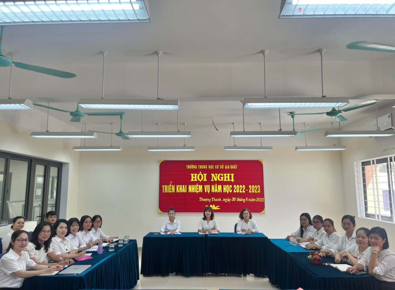 Trong không khí thi đua chào mừng những ngày lễ trọng đại của đất nước, trường THCS Gia Quất đang gấp rút hoàn thiện những hạng mục cuối cùng để đón chào năm học mới. Hòa chung không khí ấy, chiều ngày 30/8/2022, trường THCS Gia Quất đã tổ chức Hội nghị triển khai nhiệm vụ năm học 2022 - 2023. Tham dự Hội nghị có đồng chí Lê Kim Tuyến - Bí thư chi bộ - Hiệu trưởng nhà trường, đồng chí Phạm Thị Thanh Bình – Phó bí thư chi bộ - Phó Hiệu trưởng cùng toàn thể cán bộ, giáo viên, nhân viên nhà trường.
