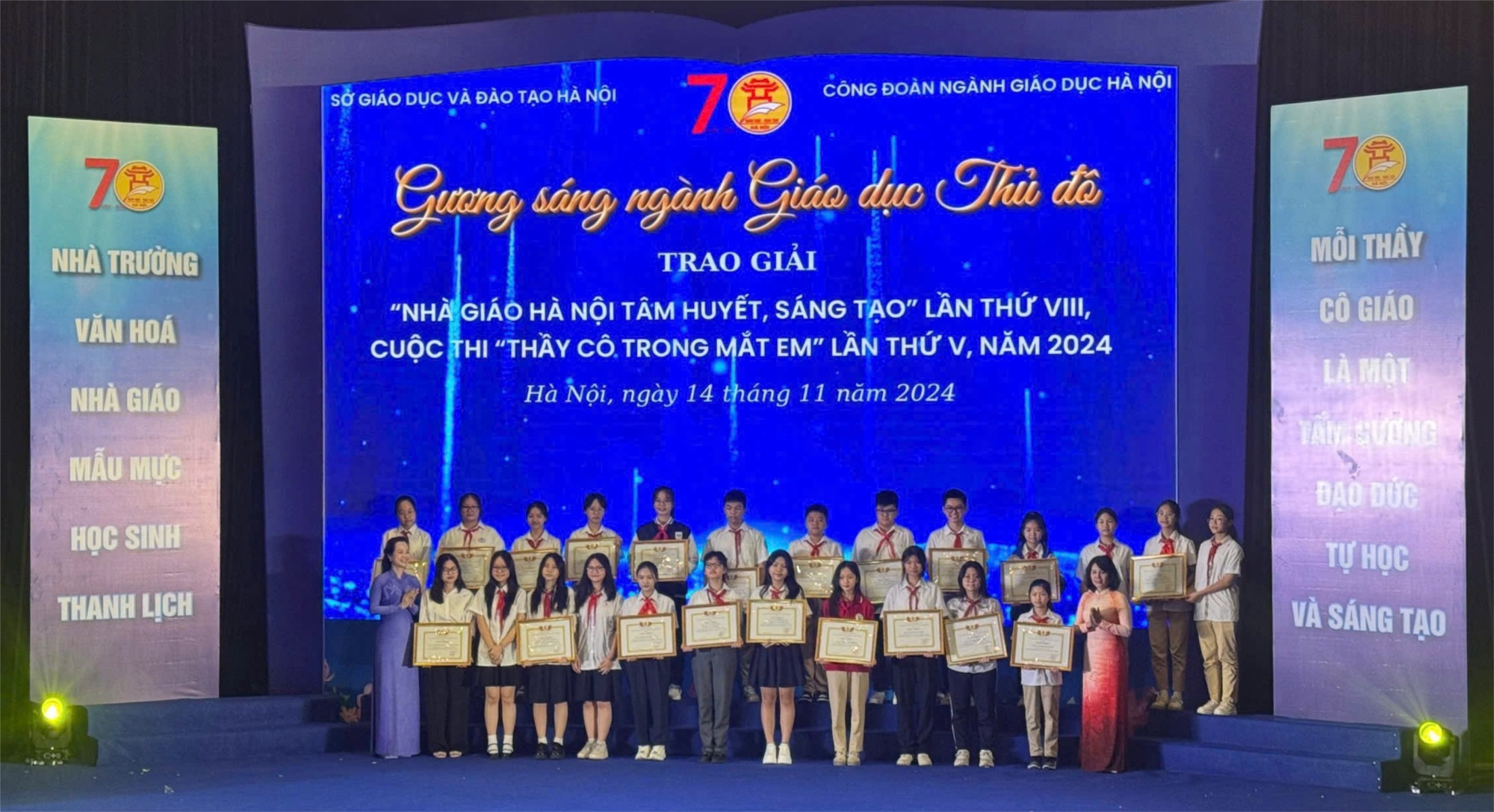 Sau khi tuyển chọn kỹ lưỡng, Ban tổ chức đã trao 1 giải Đặc biệt, 10 giải Nhất, 20 giải Nhì và 39 giải Ba. Trong đó, học sinh Phạm Vũ Hà Phương lớp 9A1 vinh dự đạt giải Nhì với tác phầm “Cô giáo Trần Thu Thủy- Thanh âm hạnh phúc”.