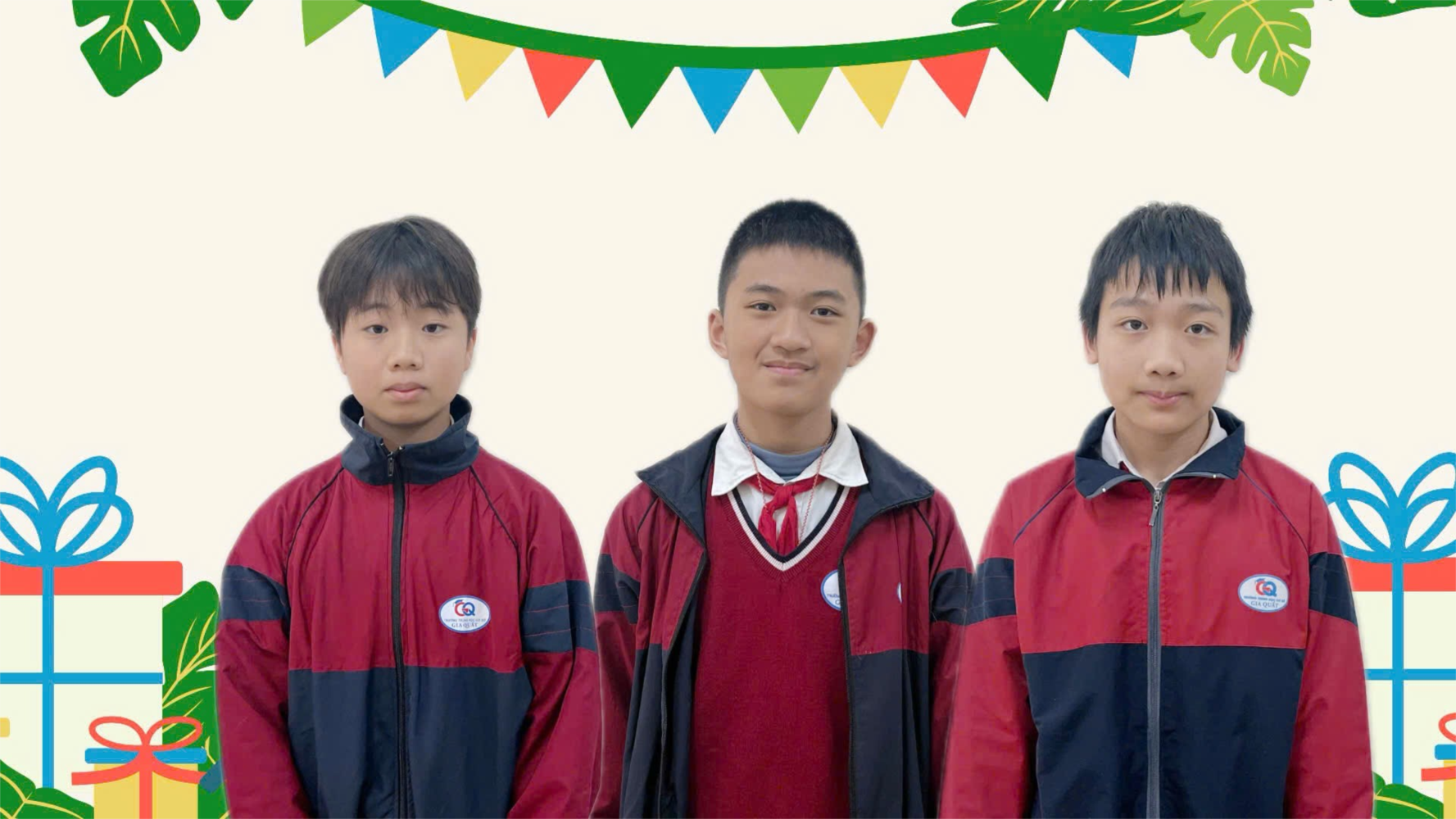 Hình ảnh ba em học sinh Trường Giang, Đức Quang, Anh Quân – lớp 7A2