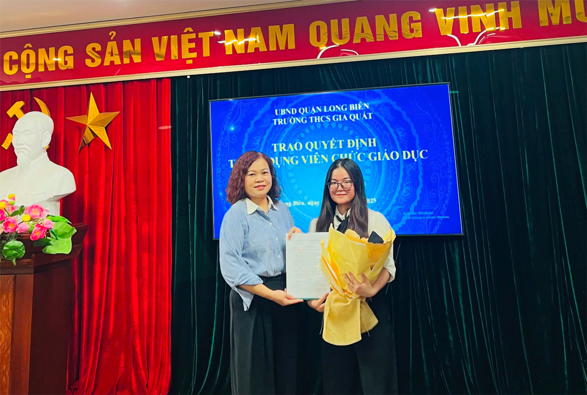 Ngày 20/6/2025, trường THCS Gia Quất tổ chức trao quyết định tuyển dụng viên chức giáo dục cho 02 đồng chí vào viên chức làm việc tại trường THCS Gia Quất: