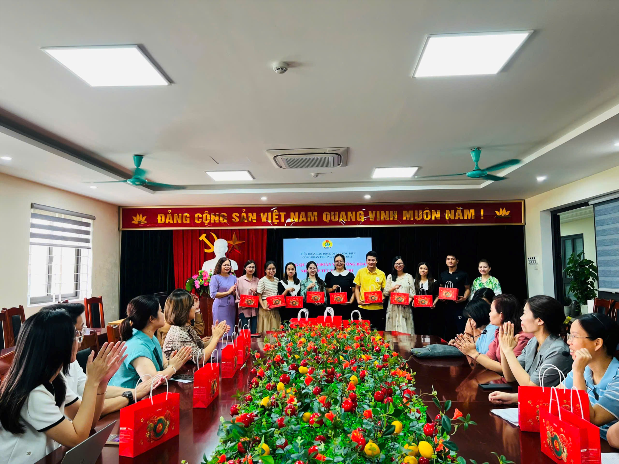 Công đoàn trường tặng quà cho các đoàn viên